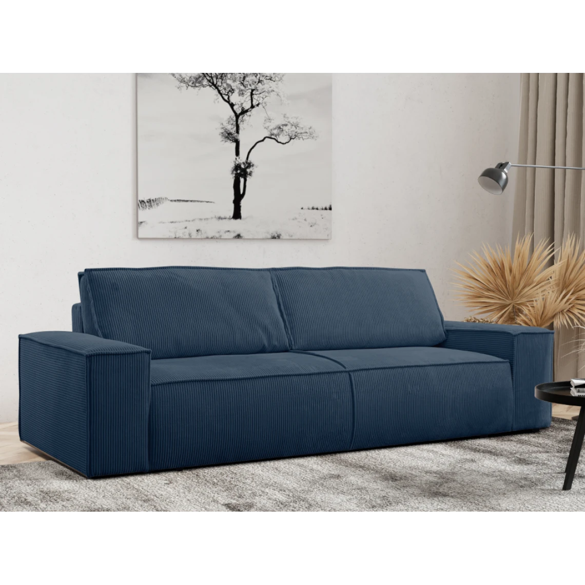 Points forts Vente-Unique Canapé 3 places convertible en velours côtelé bleu marine AMELIA