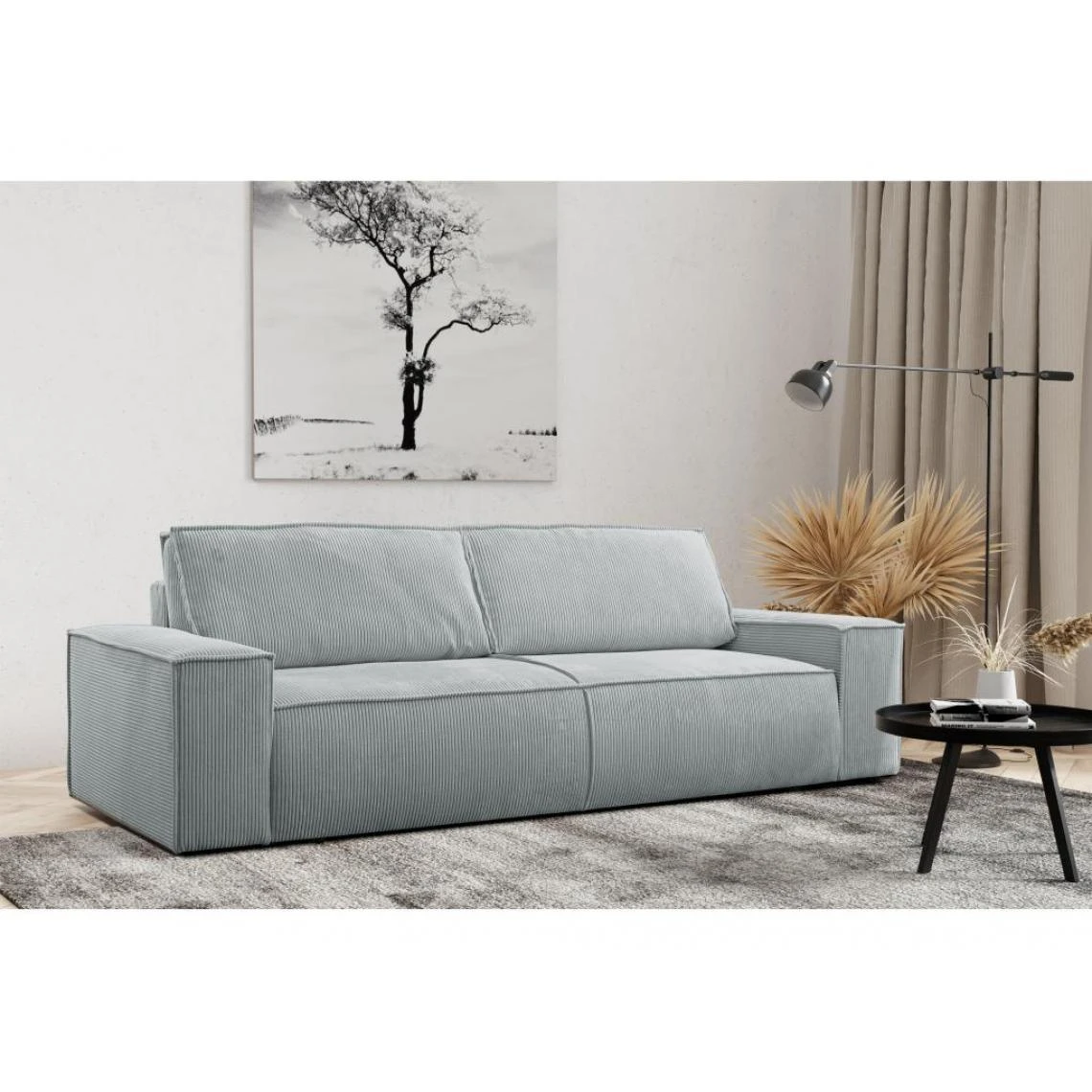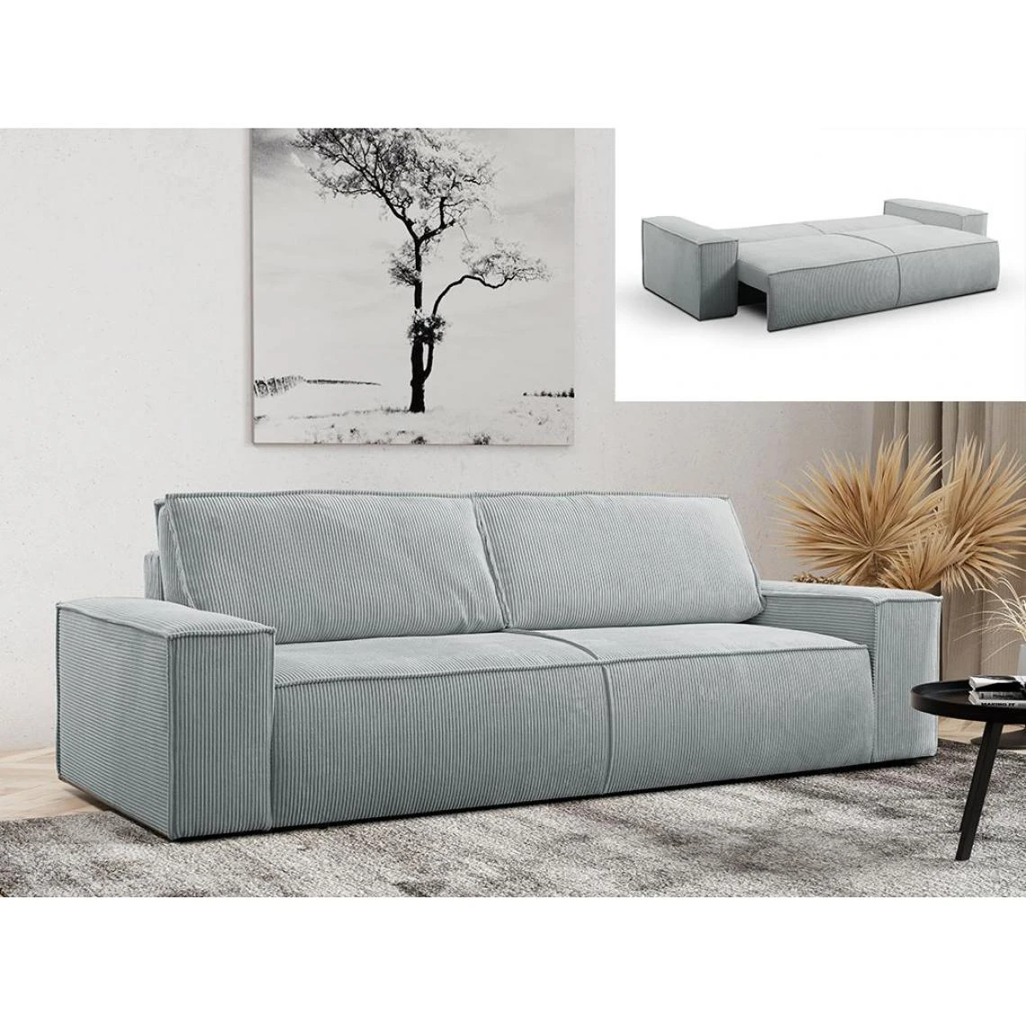 Points forts Vente-Unique Canapé 3 places convertible en velours côtelé gris clair AMELIA