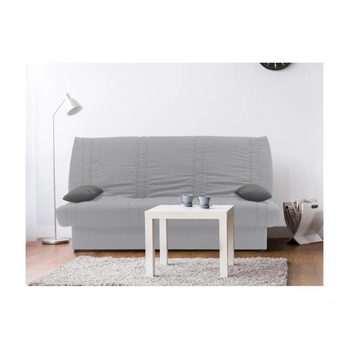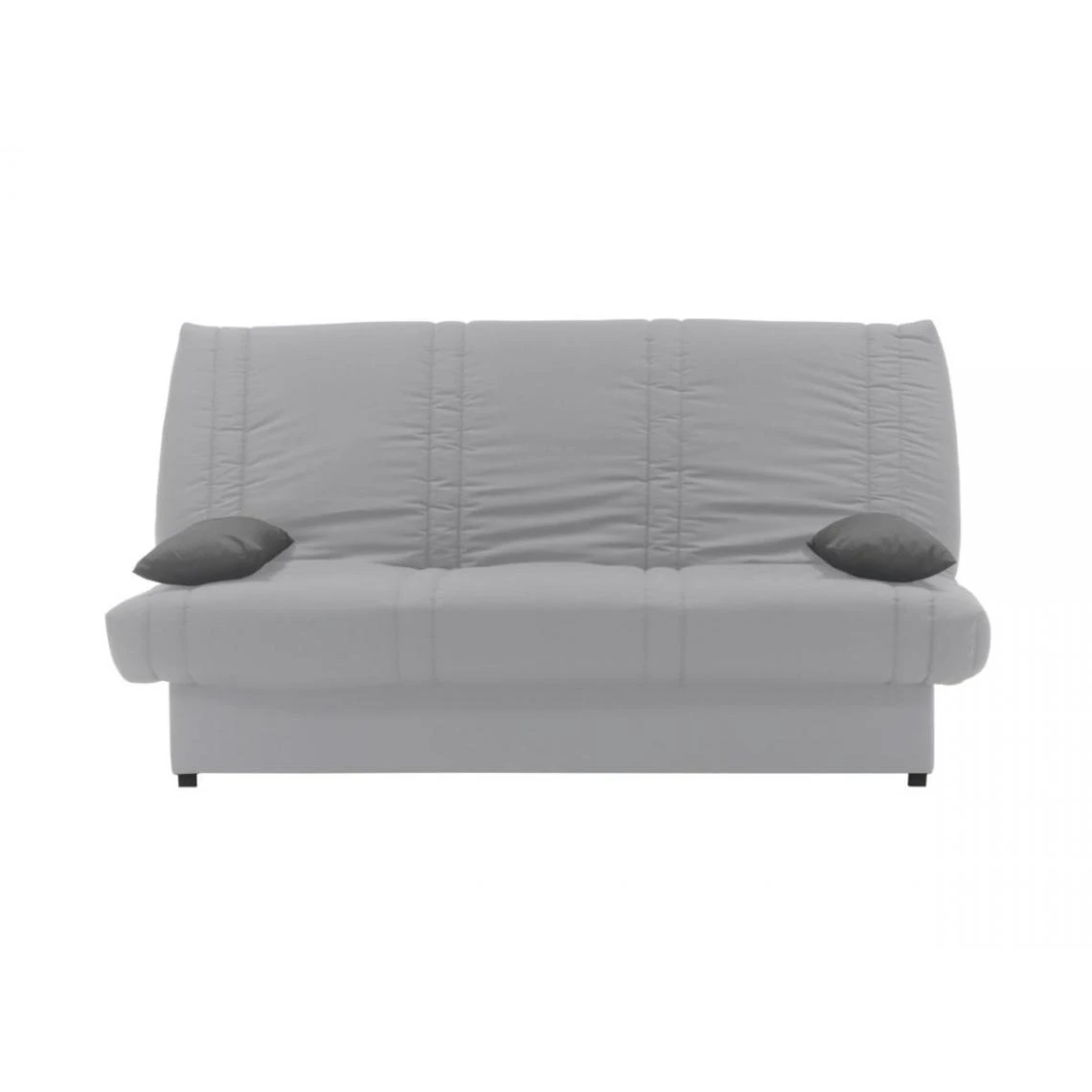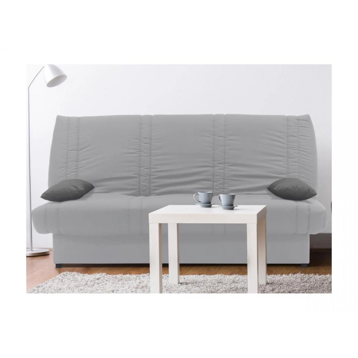 Points forts Vente-Unique Canapé convertible clic-clac 100% coton avec coffre de rangement FARWEST II – Gris clair coussins contrastés