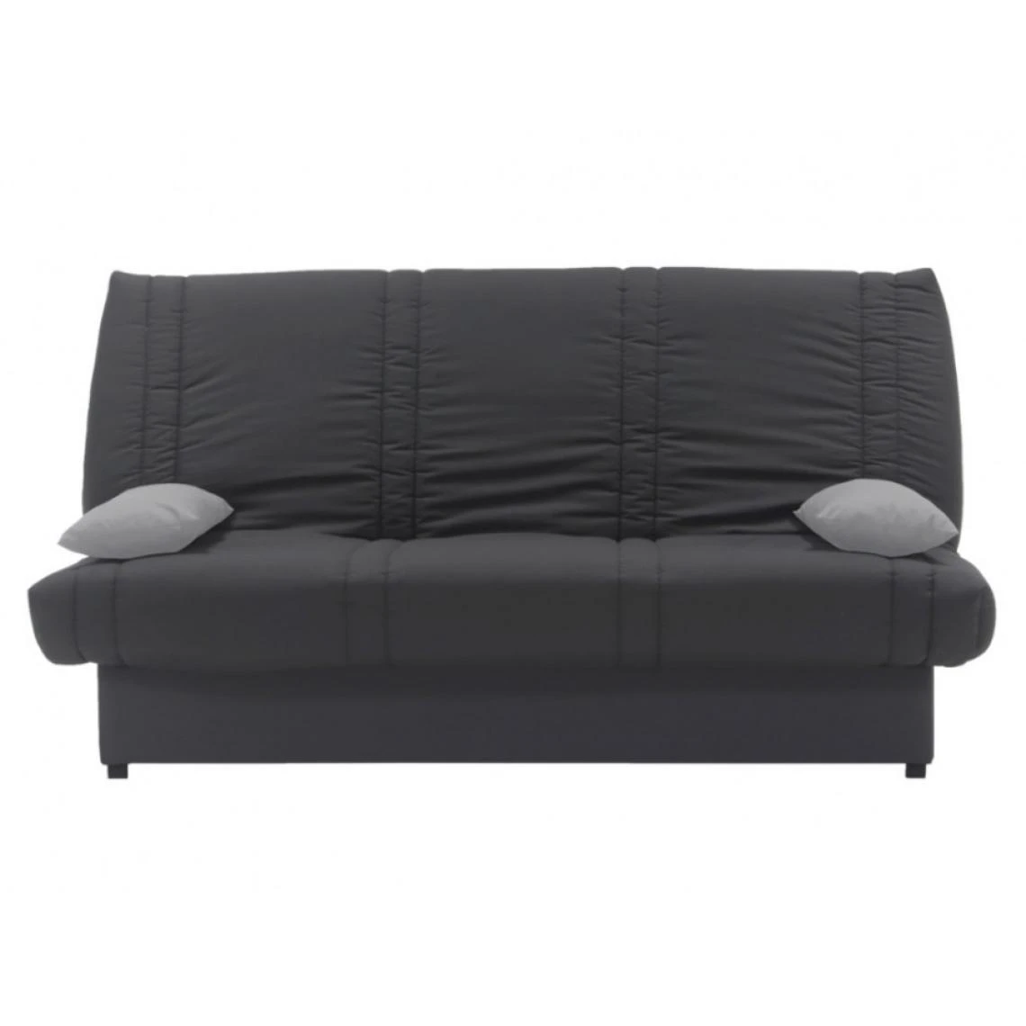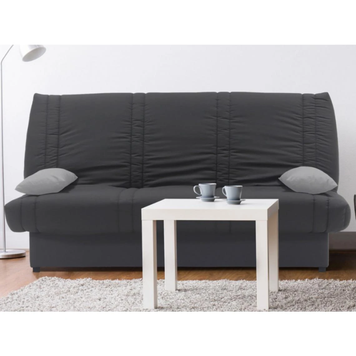 Points forts Vente-Unique Canapé convertible clic-clac 100% coton avec coffre de rangement FARWEST II – Gris foncé coussins gris clair
