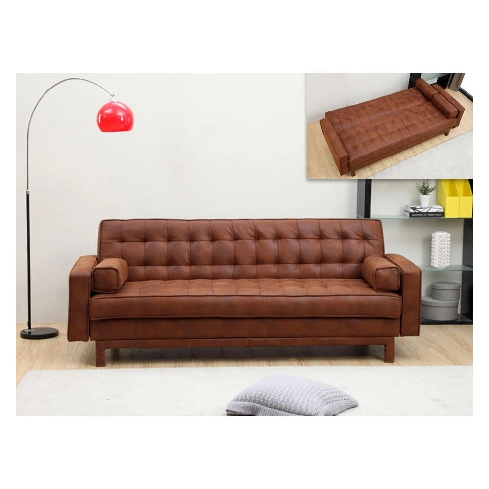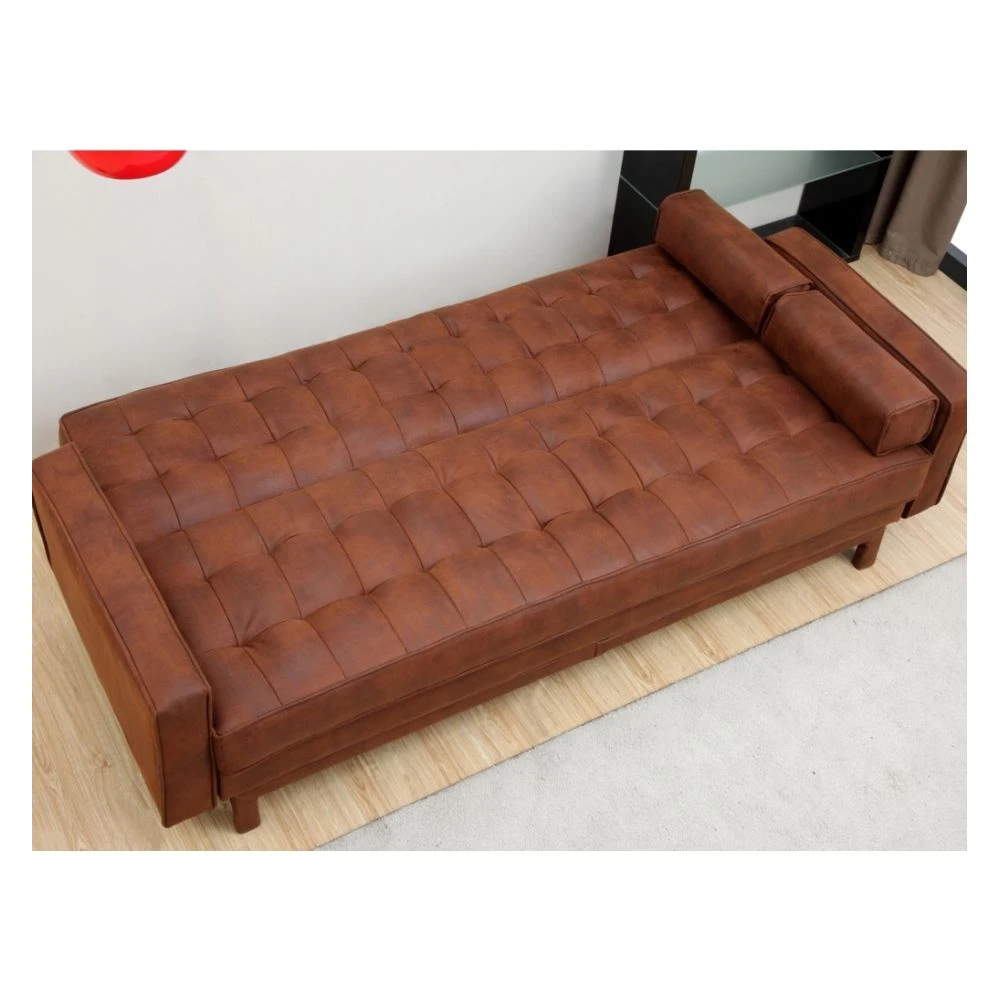 Canapé convertible mécanisme clic-clac en tissu marron ELEANOR