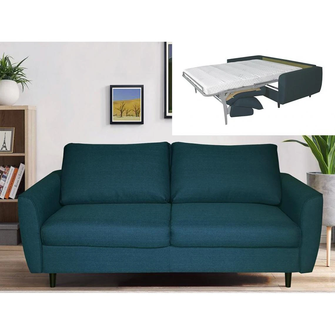 Points forts Vente-Unique Canapé convertible express en tissu bleu YVAN
