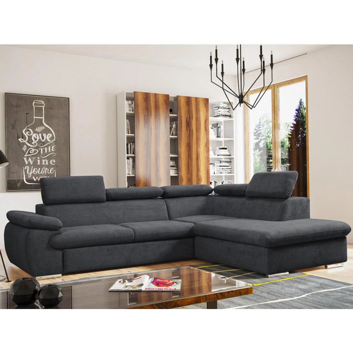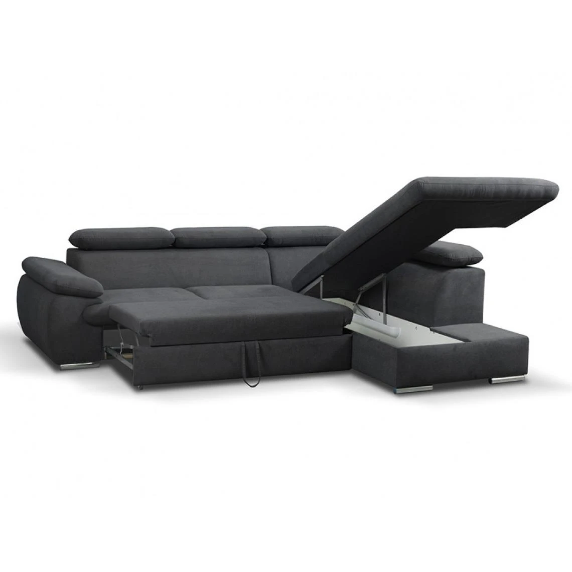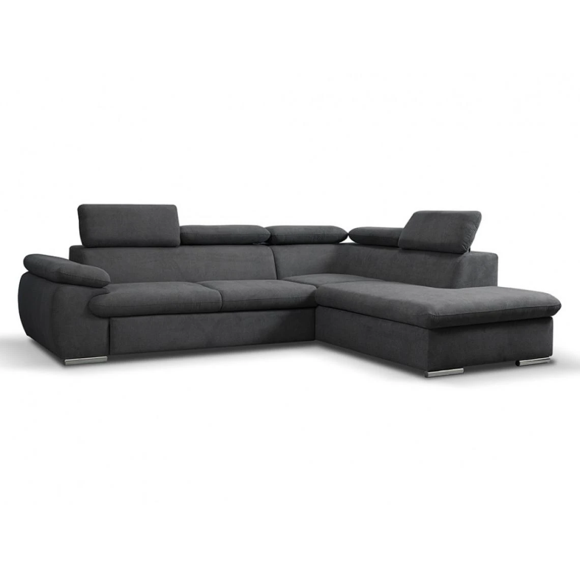 Points forts Vente-Unique Canapé d’angle convertible en tissu avec coffre de rangement FABIEN – Anthracite – Angle droit