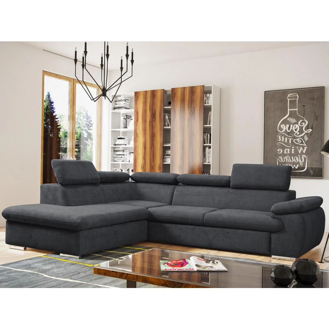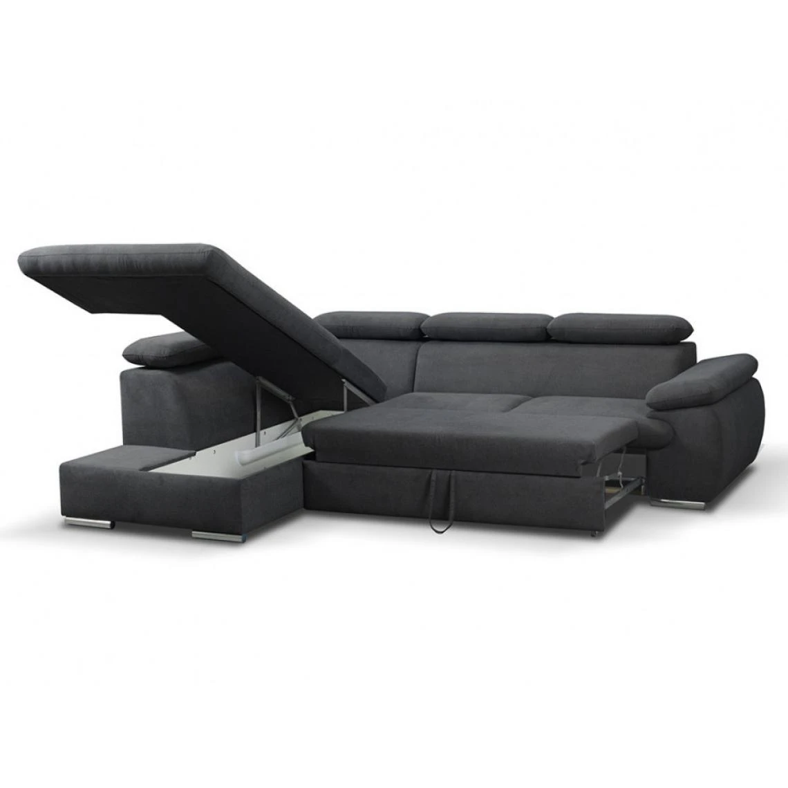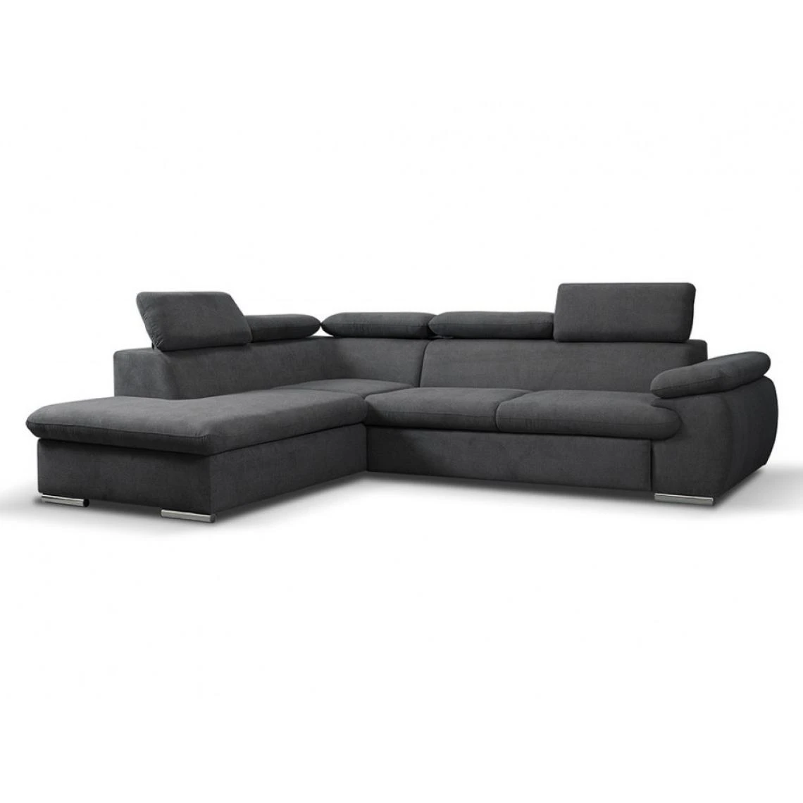 Points forts Vente-Unique Canapé d’angle convertible en tissu avec coffre de rangement FABIEN – Anthracite – Angle gauche