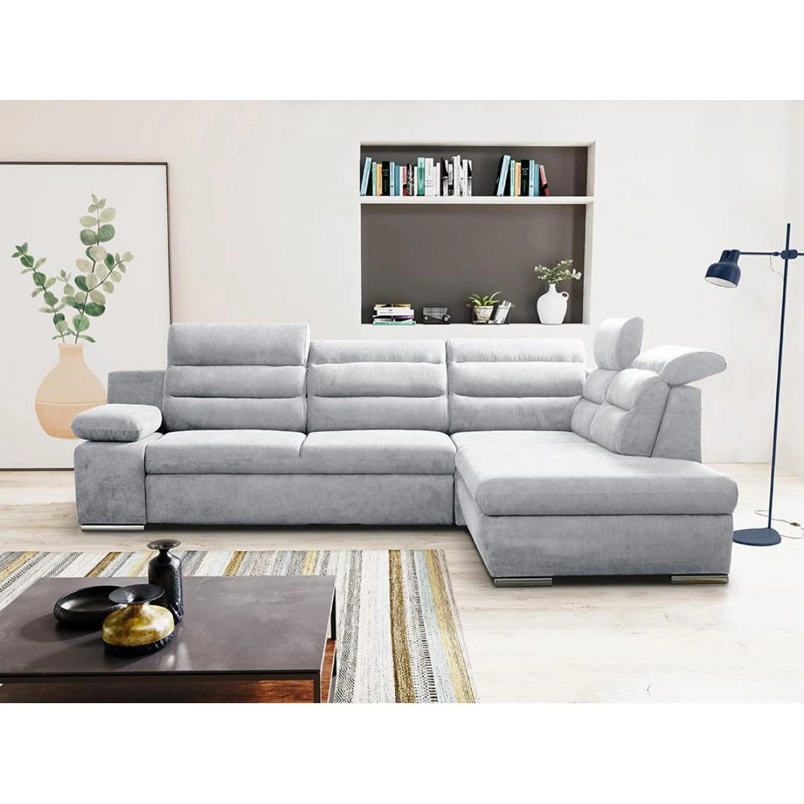 Points forts Vente-Unique Canapé d’angle convertible en tissu PYLOS – Gris clair – Angle droit