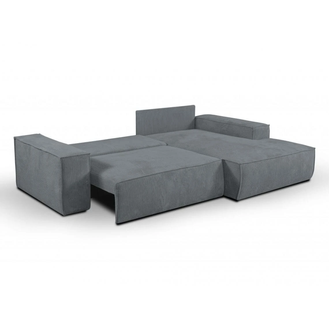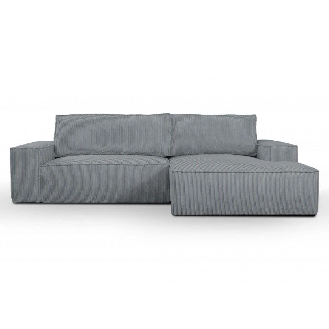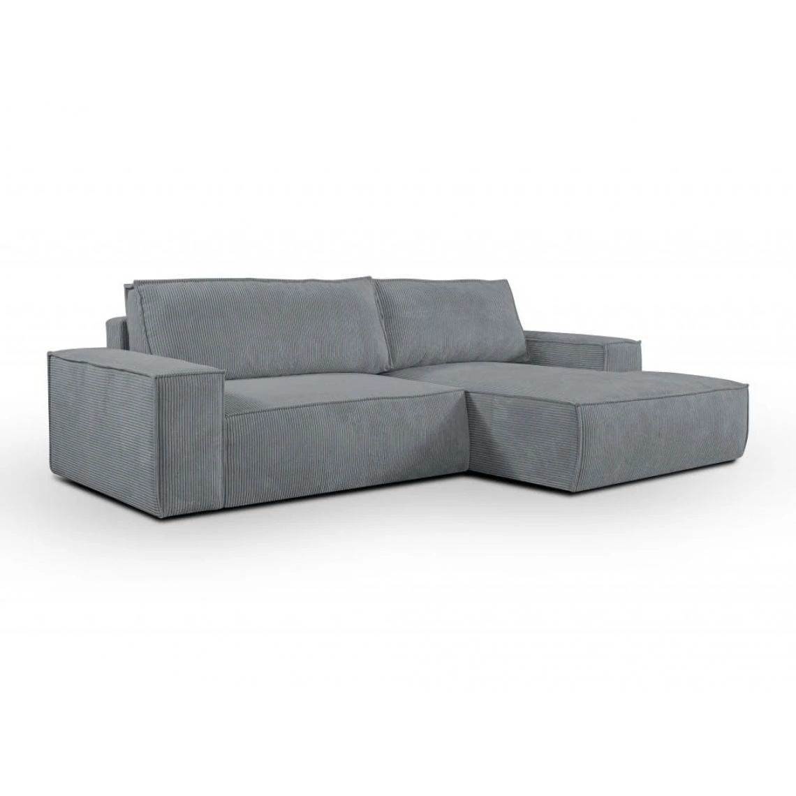 Points forts Vente-Unique Canapé d’angle convertible en velours côtelé gris AMELIA – Angle droit