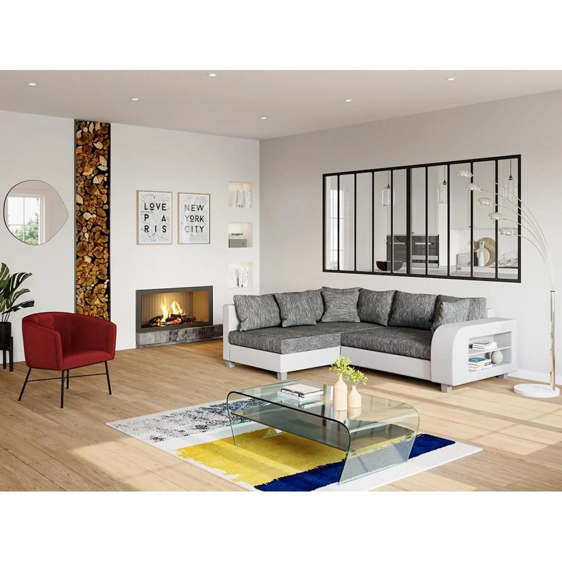 Points forts Vente-Unique Canapé d’angle convertible tissu et simili KUOPIO – Gris et blanc – Angle gauche