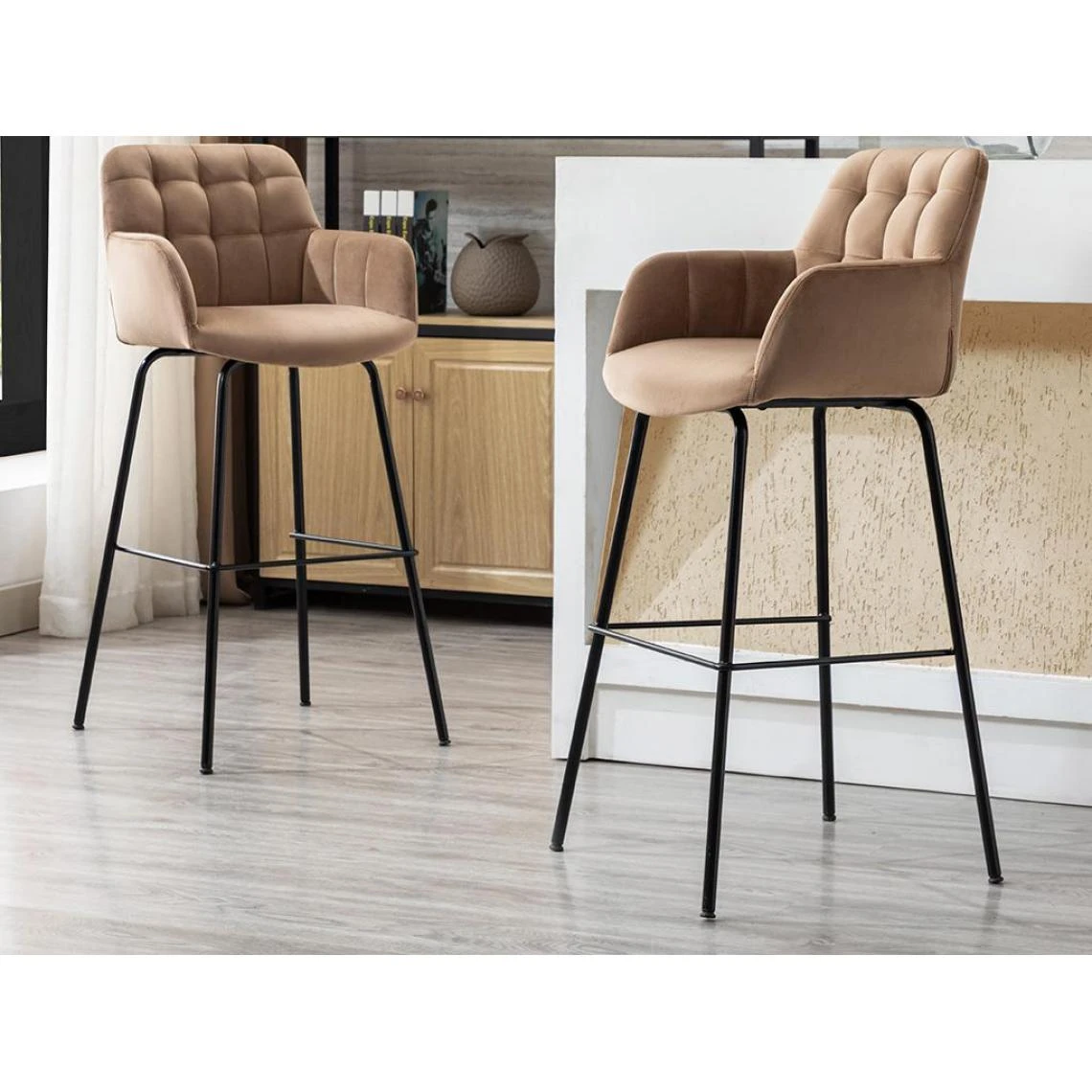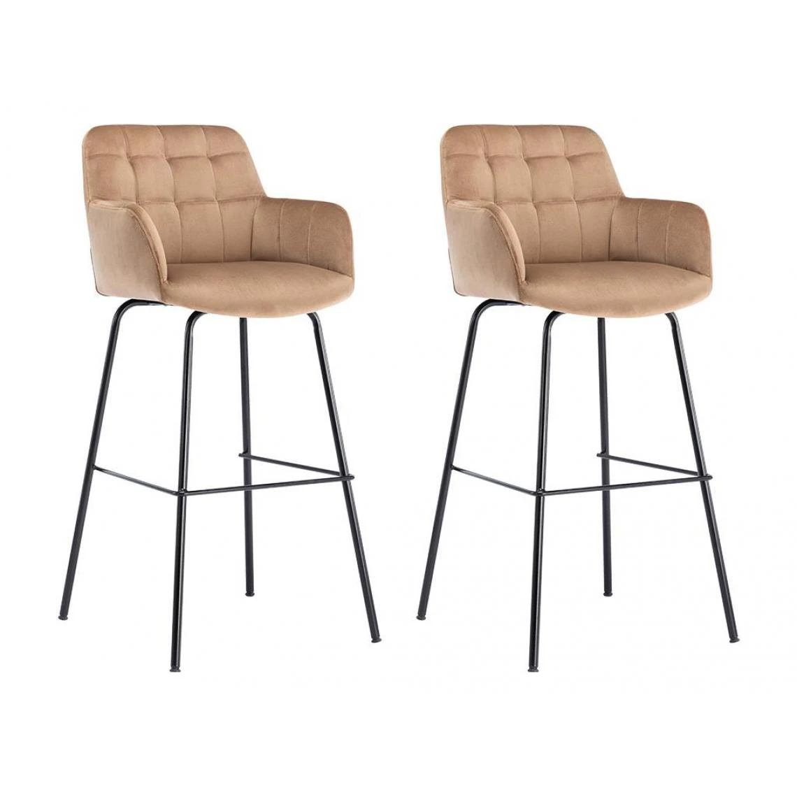 Points forts Vente-Unique Lot de 2 tabourets de bar en velours et métal – Beige – PEGA
