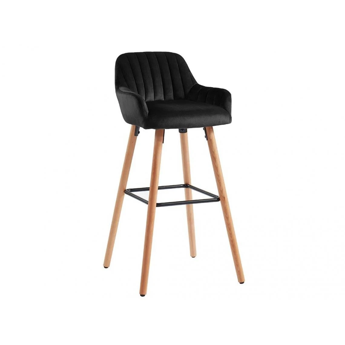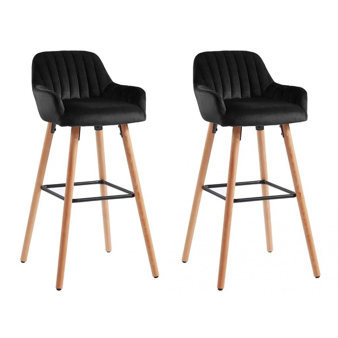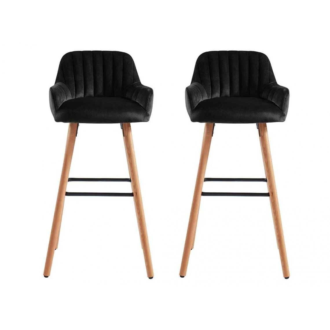 Points forts Vente-Unique Lot de 2 tabourets de bar en velours et pieds bois de hêtre – Noir – ELEANA