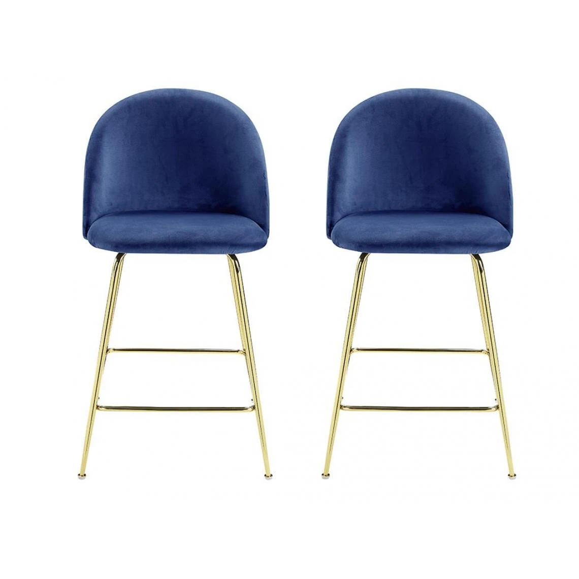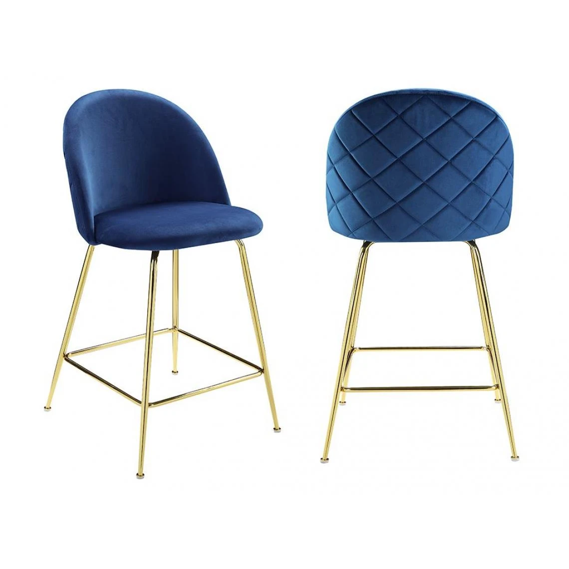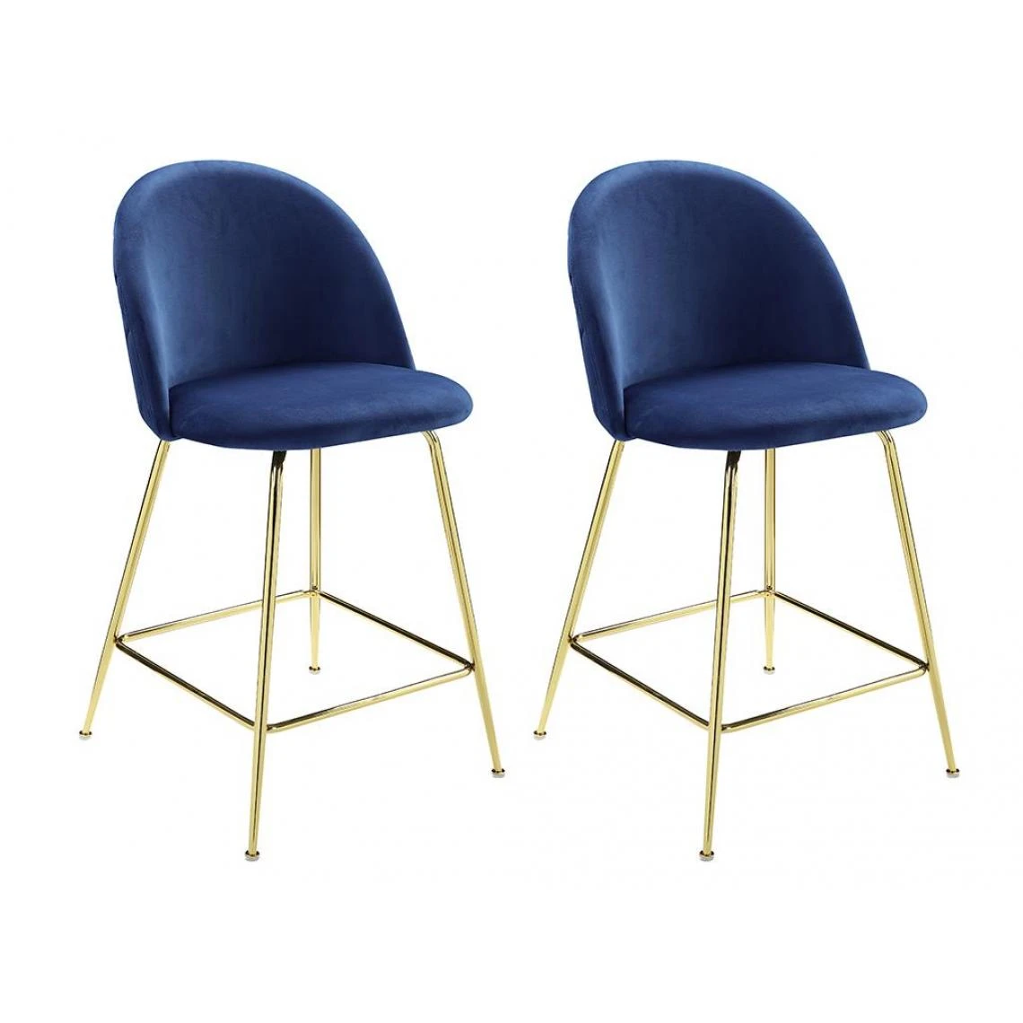 Points forts Vente-Unique Lot de 2 tabourets de bar MELBOURNE – Velours et métal doré – Bleu