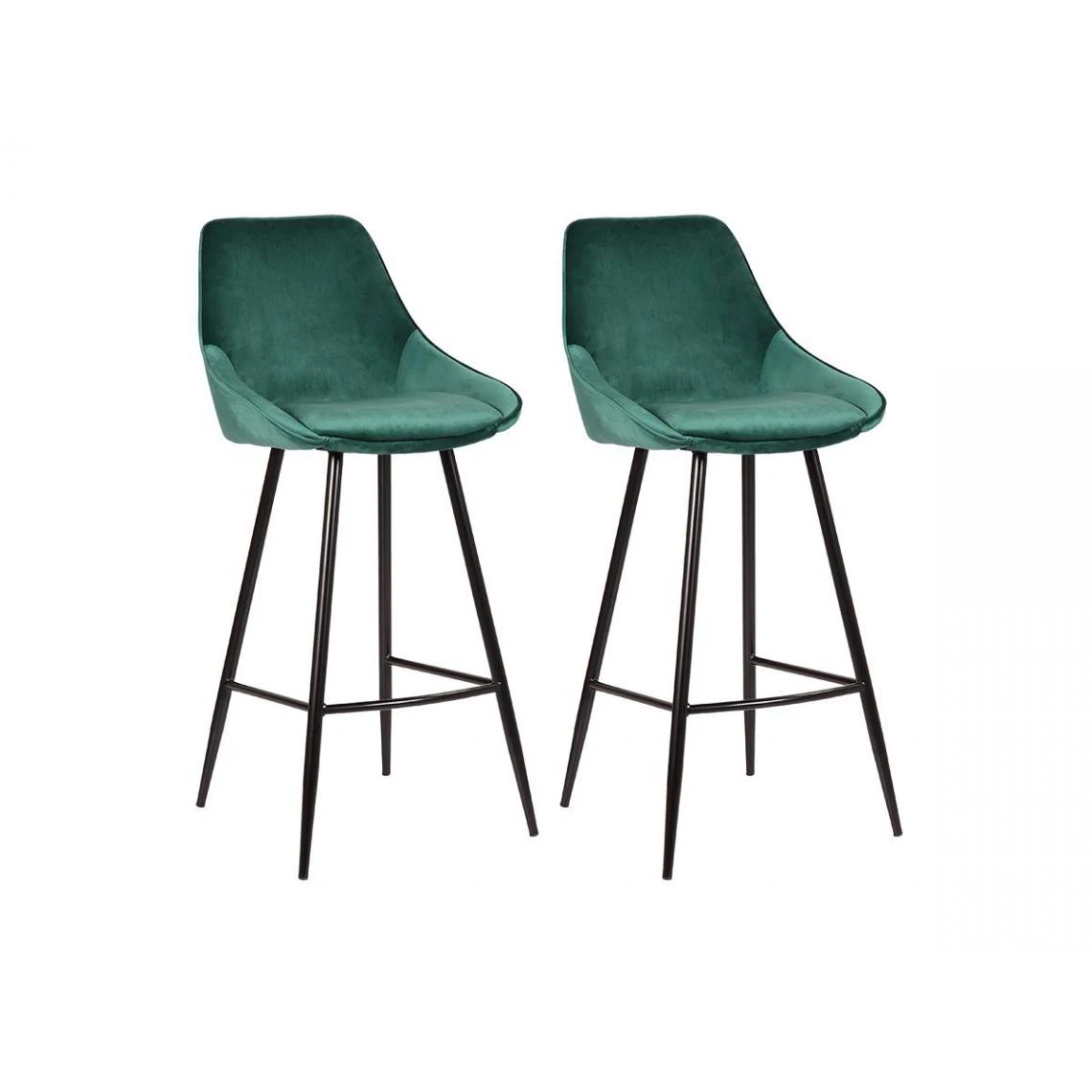 Points forts Vente-Unique Lot de 2 tabourets de bar – Velours – Vert foncé – MASURIE